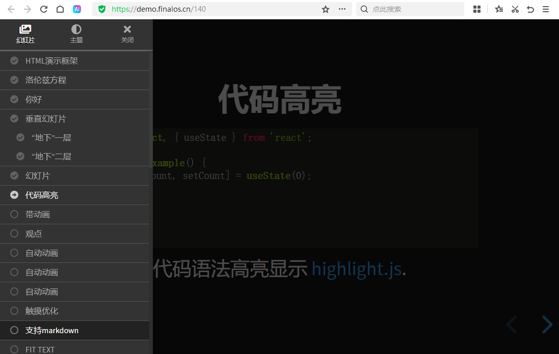 - 纯代码编写:用简单的HTML标签和Markdown语法就能创建专业演示