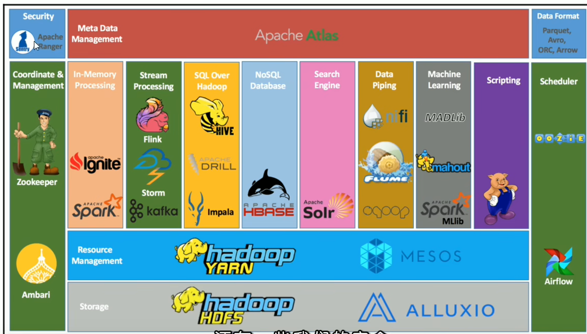 - 广义上 Hadoop 指的是围绕 Hadoop 打造的大数据生态圈