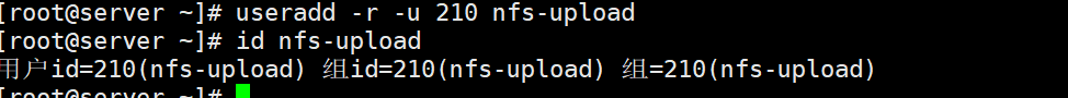 并将所有用户及所属的组映射为nfs-upload,其UID和GID均为210