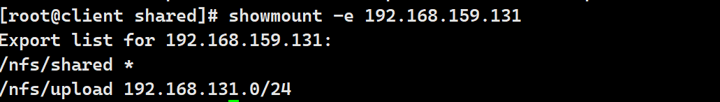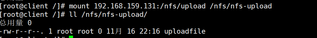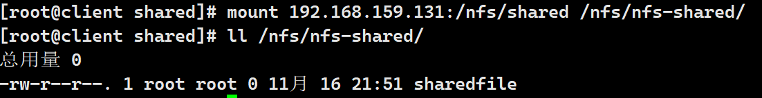 [root@client ~]# mount 192.168.159.131:/nfs/shared /nfs/shared