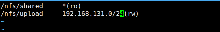 进入NFS的配置文件为/etc/exports,文件内容默认为空
