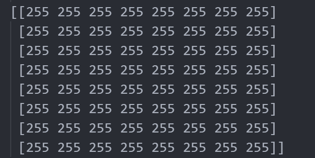 print(c)OpenCV会重新设置打印,与输出不同。解释为三行八列三层的矩阵,np.unit8是数据类型。