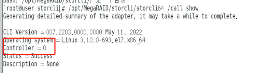 controller_id:存储控制卡ID,单卡默认为0,多卡以storcli64 /call show命令实际查询结果为准。