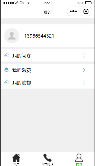 包括登录注册、我的问卷、我的缴费以及我的购物。