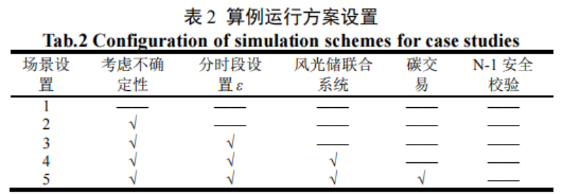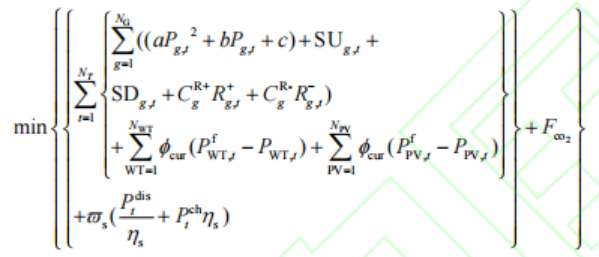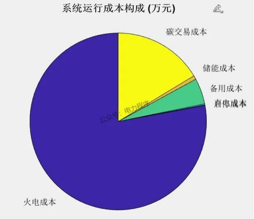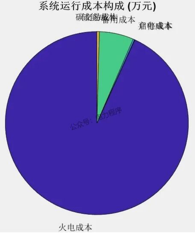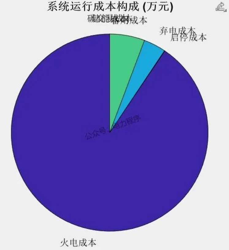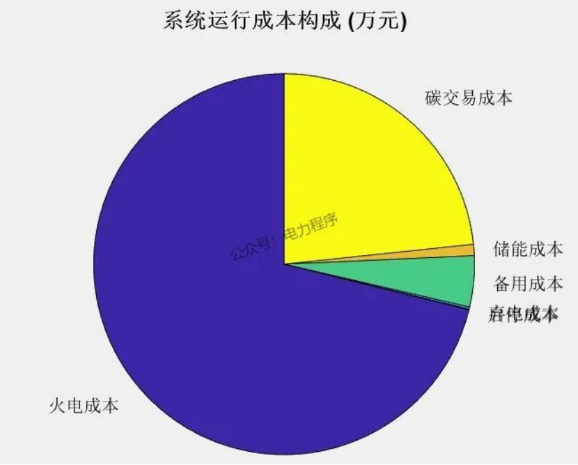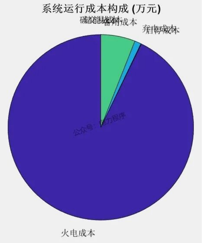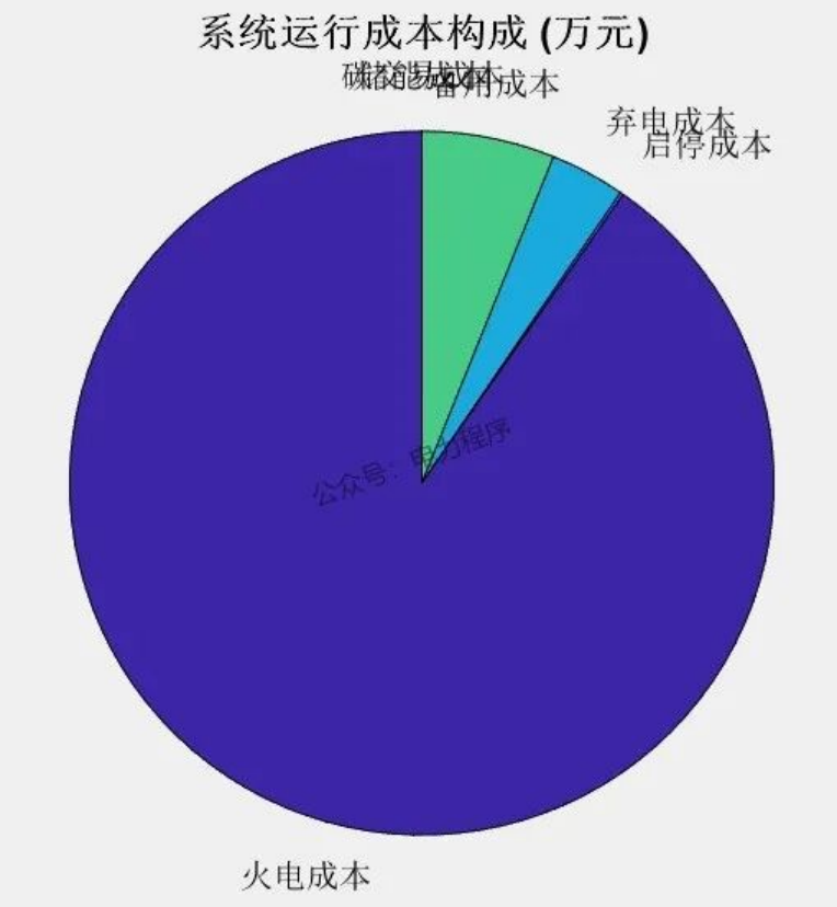 程序以系统运行成本最小化为目标函数,主要包括火电机组发电成本、启/停成本、正负备用成本、弃风弃光成本、储能折旧成本和碳阶梯交易成本。