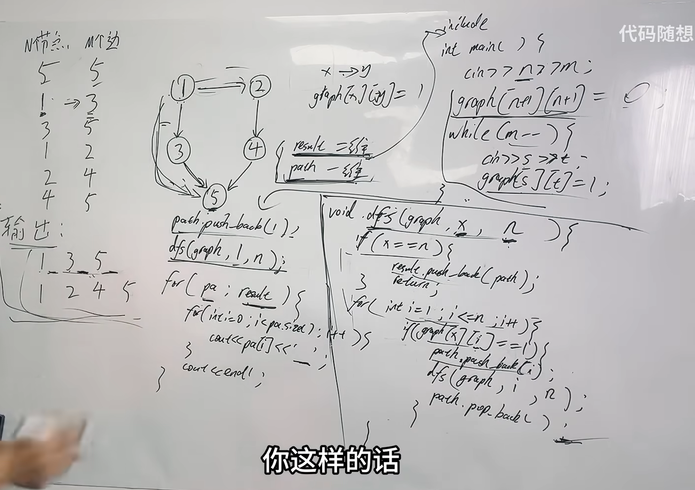 因为要找 “所有可能的路径”,我们需要一种 “不遗漏” 的搜索方法。可以想象成 “走迷宫”:从起点出发,尝试所有岔路,走到终点就记录路线,走不通就回头换一条路。这就是深度优先搜索(DFS)。
