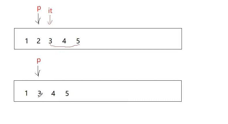 这里访问p数据会报错由于数据挪动,p已经不是指向2了,所以