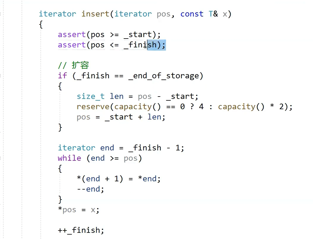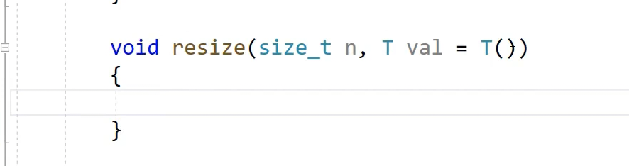 void resize(size_t n, T val = T()){if (n < size()){_finish = _start + n;}else{reserve(n);while (_finish < _start + n){*_finish = val;++_finish;}}}大部分用resize初始化,